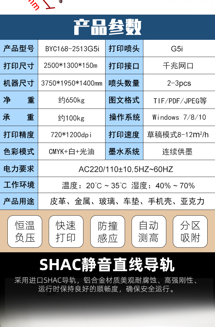 產品介紹:博易創BYC-168 G5I 大型理光uv打印機